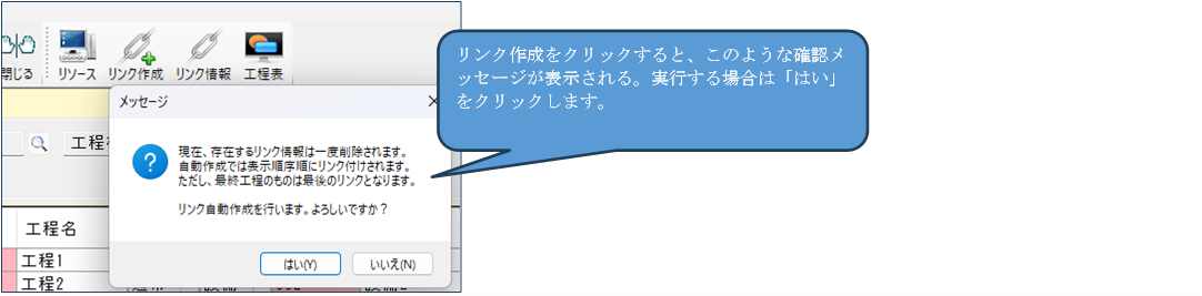 クリックすると工程表が起動します。工程表は、工程の順序などを図的に表現したものです。詳しくは。工程表参照してください。